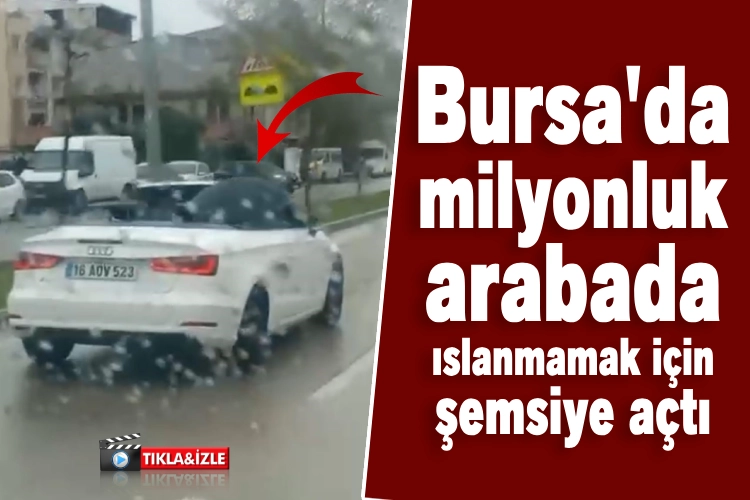Bursa'nın merkez Nilüfer ilçesinde seyir halinde olan sürücü aracının açılır tavanını kapatamayınca yan koltukta oturan arkadaşı yağmurdan korunmak için farklı bir yönteme başvurdu. Şemsiye açarak seyahat eden sürücü ve arkadaşı, yoldan geçen diğer sürücüler ve yayalar tarafından şaşkınlıkla izlendi. Bazı vatandaşlar, sürücünün bu cesur ve eğlenceli hareketine gülerek tepki verirken, kimisi de o anları cep telefonu kamerasıyla kayda aldı.