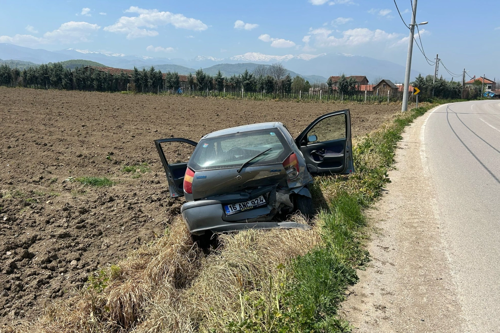Kaza, İnegöl'e bağlı kırsal Ortaköy Mahallesi yolu üzerinde meydana geldi. Cadde üzerinde seyir halinde olan Sürücü Cemil O. yönetimindeki 16 VT 178 plakalı otomobil, önünde seyreden sürücü Emre Ç. yönetimindeki 16 ANC 924 plakalı otomobile arkadan çarpıştı. Çarpışmanın etkisiyle savrulan Emre Ç. yönetimindeki otomobil tarlalık alana uçtu. Kaza sonucu sürücüler yaralanmazken, otomobil de yolcu konumunda bulunan Yücel Ç.(59) yaralandı. Yaralı kaza yerine sevk edilen Ambulansla İnegöl Devlet Hastanesine kaldırıldı. Jandarma komutanlığı ekipleri kazayla ilgili soruşturma başlattı.