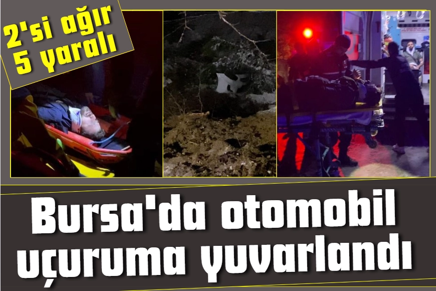 Kaza, dün saat 20.30 sıralarında İnegöl'ün kırsal Çayyaka Mahallesi Boğazova mevkiinde meydana geldi. Boğazova'dan İnegöl'e seyir eden Hüseyin R. (28) yönetimindeki 16 ADM 671 plakalı otomobil, sürücüsünün kontrolünden çıkarak 100 metre yükseklikten uçuruma yuvarlandı. Kazayı gören vatandaşlar durumu 112 Acil Çağrı Merkezi'ne bildirdi. İhbar üzerine olay yerine çok sayıda sağlık, jandarma ve itfaiye ekibi sevk edildi. Ekipler araçta sıkışan sürücü ve yolcular Yasin D.(25), Şaban E. (28), Mirali S. (31) ve Alaaddin M.'yi (29) kurtarmak için yoğun çaba harcadılar. Halatlarla yukarıya çekilen yaralılar, ambulanslarla İnegöl Devlet Hastanesi'ne kaldırıldılar. Yaralılardan Yasin D. ve Şaban E.'nin sağlık durumunun ciddiyetini koruduğu öğrenildi. Jandarma ekipleri kazayla ilgili inceleme başlattı.