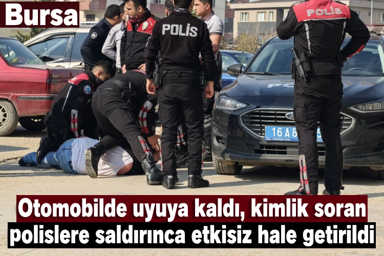 Olay, saat 13.00 sıralarında İnegöl Organize Sanayi Bölgesi 1. Cadde üzerinde meydana geldi. Araçta hareketsiz yatan bir kişi gören İnegöl Emniyet Müdürlüğü Trafik Büro Amirliği ekipleri, şahsı uyandırdılar. Ekipler şüphelendikleri şahıstan kimlik istedi. Ekiplere kimlik göstermeyen şahıs, hakaret etmeye başladı. Daha da öfkelenen alkollü olduğu öğrenilen şahıs, ekiplere saldırdı. Olay yerine çok sayıda polis ekibi sevk edildi. Etkisiz hale getirilen şüpheli Süleyman A. (48) sağlık kontrolü için hastaneye getirildi. Hastanede de alkolmetreyi üflemeyi reddeden şahıs, hastaneden çıkarılıp ekip otosuna bindirilmek istendiğinde yine ekiplere zorluk çıkarmaya başladı. Polislere küfürler eden şahıs, zorlukla yeniden etkisiz hale getirilip, ekip otosuyla karakola götürüldü. 3'ü trafik 3'ü yunus ekibi olmak üzere 6 polise mukavemette bulunma suçundan gözaltına alınan şahıs, sorgulamanın ardından adliyeye sevk edildi. Sürücünün 16 PD 280 plakalı otomobil, çekici yardımıyla otoparka çekildi.
