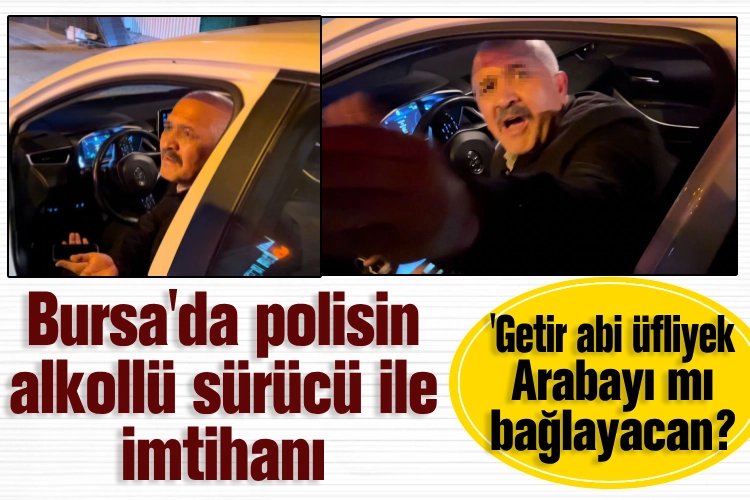 Bursa'da kent genelindeki bir çok noktada uygulama yapıp kural tanımaz sürücülere adeta nefes aldırmayan Trafik Denetleme Şube Müdürlüğü ekipleri, dün gece yine mesaideydi. Son olarak merkez Yıldırım ilçesi Barış Caddesi üzerinde yaptıkları alkol uygulamasında bir otomobilden şüphelenen trafik polisleri otomobili durdurdu. Alkolmetreyi üflemeyi reddeden Aydın K., kendisini otomobilden çıkarmak isteyen polis ekiplerine dakikalarca direnç gösterdi. Polis memurunun 'Eğer üflemeyi reddederseniz ehliyetinize 2 yıl el konulacak' demesinin ardından "Abi ne istiyorsunuz ya.., arabayı mı bağlayacaksınız" diye bağırmaya başlayan sürücü polis memurunun "Şeker hastası mısın? Neden bağırıyorsun? beyefendi" demesi üzerine adeta kendisini kilitleyip uzun süre sadece kameraya baktı. Bir süre sonra "Getir abi üfliyek... Ne yapacan arabayı mı bağlayacan?" diyerek alkolmetreyi üfleyen sürücü 0.55 promil alkollü çıkınca yeniden bağırmaya başladı. Öfkeli sürücüden basın mensupları da nasiplerini aldı. Kamerayı görünce önce çekin kardeş diyen sürücü alkollü çıkmasının ardından 'ne çekiyorsun kardeşim' diyerek tepki gösterdi. Alkollü olduğu için 6 bin 439 lira idari para cezası kesilip ehliyetine ise 6 ay el konulan Aydın K.'nın kullandığı otomobil de kontrol noktasına gelen bir yakınına teslim edildi. Öte yandan, yetkililer, kentin huzur ve güveni için uygulamaların aralıksız süreceğini belirtti.