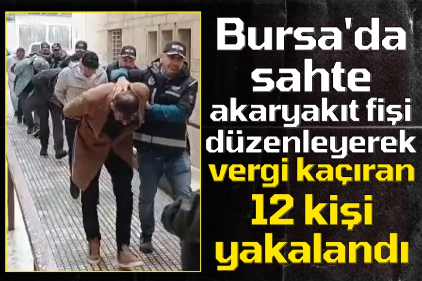 Bursa İl Emniyet Müdürlüğü Kaçakçılık ve Organize Suçlarla Mücadele Şube Müdürlüğü tarafından yapılan operasyonda vergi usul kanununa muhalefet, resmi belgede sahtecilik, nitelikli dolandırıcılık suçları soruşturması çerçevesinde 12 şüpheli şahsın vergi kaçakçılığı yaptığı tespit edildi. Şahısların sahte akaryakıt fişleri düzenlenerek akaryakıt alımı yapılmayan ticari araçlara akaryakıt alımı yapılmış gibi gösterildiği, bahse konu sahte akaryakıt fişlerinin Hazine ve Maliye Bakanlığına gider olarak gösterilip, bu yöntemle ödenmesi gereken vergilerin ödenmeyerek vergi kaybına yol açıldığı anlaşıldı.