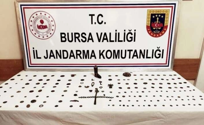 Merkez Nilüfer ilçesi Gölyazı Mahallesi'nde bir ikamette tarihi eserleri satmak isteyen kişilerin olduğunu tespit eden ekipler baskın düzenledi. Baskında A.A., S.Y., E.T., A.A. ve A.Ç. gözaltına alındı. Şüphelilerin ikamet ve araçlarında yapılan aramalarda 161 adet sikke, 1 adet zincir, 7 adet yüzük ve 15 adet obje ele geçirildi. Şüpheliler haklarında adli işlem uygulandıktan sonra serbest bırakılırken, tarihi eserler Bursa Müze Müdürlüğüne teslim edildi.