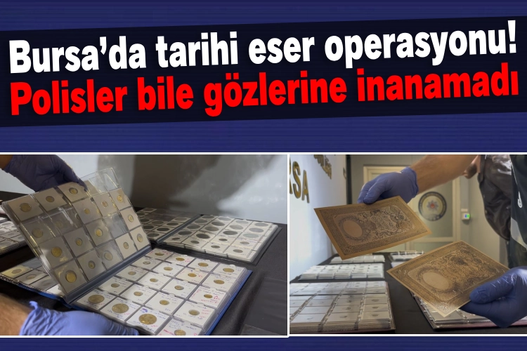 Bursa il Emniyet Müdürlüğü, Kaçakçılık ve Organize Suçlarla Mücadele Şube Müdürlüğü ekipleri tarihi eser kaçakçılarına yönelik yaptığı çalışmada, aldığı istihbari bilgiler sonucunda Nilüfer İlçesinde oturan R.Ö., isimli 66 yaşındaki bir iş adamını radarına aldı. Ekipler takip ettiği şüphelinin adresine Cumhuriyet Başsavcılığı talimatıyla düzenlediği baskında Napolyon ve Osmanlı dönemlerine ait 887 gümüş, 122 altın olmak üzere 1009 sikke 4 adet Osmanlı dönemine ait kağıt para ele geçirdi. Paha biçilmez operasyonda tarihi eserler muhafaza altına alınıp, inceleme yapılmak üzere ilgili müze müdürlüğüne teslim edilirken, şüpheli R.Ö. hakkında yasal işlem başlatıldı.
