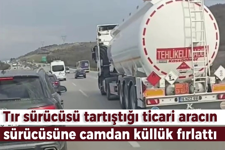 Olay, İstanbul-İzmir Otoyolunda meydana geldi. İddiaya göre yol verme meselesi nedeniyle seyir halindeki tırın sürücüsüyle, ticari aracın sürücüsü tartışmaya başladı. Ticari araç sürücüsünün arkadaşı tartıştığı tır şoförünü cep telefonu kamerasıyla kayda almaya başladı. Tartıştığı kişiler tarafından kendisinin kayda alındığı fark eden tır şoförü, araçta taşıdığı küllüğü, ticari aracın içine fırlattı. Kazaya davetiye çıkaran tartışma kameraya yansırken, kayıt yapan kişinin de tahrik edercesine şoföre, ‘Elindekini at, at' diyerek seslenmesi dikkatlerden kaçmadı.
