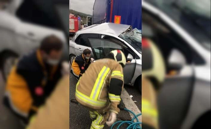 Kaza, Bursa- Ankara otoyolu Kestel ilçesi Turanköy yakınlarında meydana geldi. Edinilen bilgiye göre, İnegöl istikametinden Bursa istikametine seyreden V.Y. idaresindeki 77 EES 876 plakalı otomobil yoğun yağış sonucu görüş mesafenin düştüğü ve kayganlaşan yolda viraja girdiği sırada kontrolden çıkarak önce bariyerlere daha sonra aynı istikamette giden K.S. idaresindeki 10 AEE 069 plakalı tıra yandan çarptı. Kaza sonucu sürücü yara almazken, otomobil kullanılamaz hale geldi. İhbar üzerine olay yerine polis ve sağlık ekipleri sevk edildi. Kazanın olduğu sırada yine aynı yönden gelen V.D. idaresindeki 34 FJD 257 plakalı otomobil de kayganlaşan yolda kontrolden çıkarak tırın dorse kısmına arkadan çarptı. Bu sırada aynı şekilde kontrolden çıkan Y.K idaresindeki 34 JK 2533 plakalı otomobil de tırın dorsesine arkadan çarptı. Kaza sonucu olay yerine sağlık, AFAD, itfaiye ve polis ekipleri sevk edildi. Sağlık ekiplerinin ilk belirlemelerine göre, 34 JK 2533 plakalı otomobilde yolcu olarak bulunan ve kadın olduğu öğrenilen N.P.'nin araç içerisinde hayatını kaybettiği belirlenirken, hastaneye kaldırılan sürücü Y.K. da yapılan tüm müdahaleye rağmen kurtarılamadı. Kaza sonucu olay yerine gelen Cumhuriyet Savcısı'nın incelemelerinin ardından hayatını kaybedenlerin cenazeleri morga kaldırıldı. Kazaya karışan araçlar çekici yardımıyla olay yerinden kaldırılarak yol trafiğe açıldı. Polis ekipleri kazayla ilgili tahkikat başlattı.
