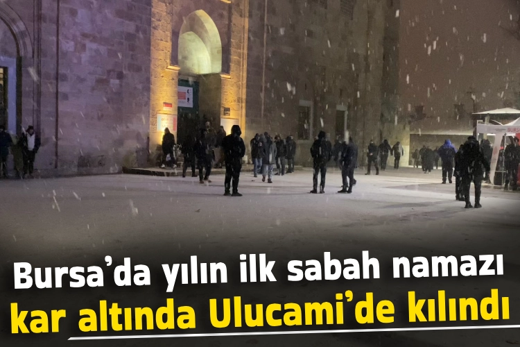 Yeni yılın ilk gününde sabahın erken saatlerinden itibaren Bursa’nın simgesi olan tarihi Ulucami dolup taştı. Yoğun katılım nedeniyle cami içerisinde yer bulamayan çok sayıda vatandaş, sabah namazını cami avlusunda ve karlar altında kıldı. Yılın ilk karıyla birlikte oluşan manzara, duygusal anlara sahne oldu.