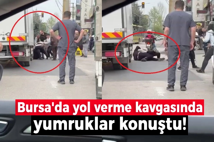 Olay, merkez Yıldırım ilçesi Veysel Karani Mahallesi'nde dün meydana geldi. İki sürücü 'Yol verme' sebebiyle tartışmaya başladı. Sözlü tartışma kısa sürede alevlenerek yerini kavgaya bıraktı. Sokağın ringe döndüğü yumruk yumruğa kavga, amatör kameraya yansıdı. Kavga, çevredeki vatandaşlar tarafından güçlükle ayırıldı.