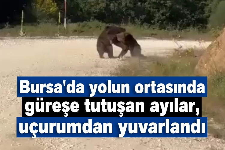 Bursa'da vatandaşlar tarafından kayda alınan görüntüler, izleyenlerin içini ürpertti. Bursa'nın Gemlik ilçesi Haydariye Mahallesinde yola inen 2 ayı, yolun ortasında güreşe tutuştu. Kendilerinin görüntüsünün alındığın fark eden ayılar, yolun kenarına doğru kaçmaya başladı. Ancak gittikleri yer ise ormanlık alan değil, uçurum olduğunu söyleyen vatandaş, ayıların aşağı yuvarlandığını söyledi.