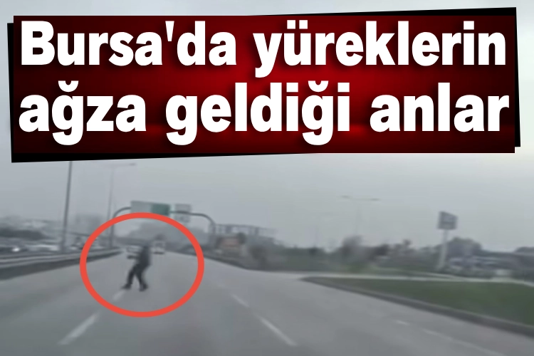 Bursa Yakın Çevre Yolu üzerinde araçların arasından yolun karşısına geçmeye çalışan kişi ölüme davetiye çıkarırken, o anlar cep telefon kamerasına yansıdı.