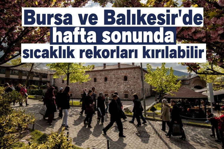 Meteoroloji Genel Müdürlüğünden alınan bilgiye göre, Bursa ve Balıkesir'de hafta sonunda sıcaklık rekorları kırılabilir. Balıkesir ve Bursa'da 25 Mayıs pazartesi günü hava sıcaklıklarının her iki kentin de mayıs ayı uzun yıllar ortalaması olan 17,7 derecenin 2,26 katına çıkarak, 40 dereceye ulaşması bekleniyor. Bursa'da ortalama en yüksek sıcaklığın 16 derece üzerinde, Balıkesir'de ise 14,7 derece üzerinde sıcaklık tahmin ediliyor.
