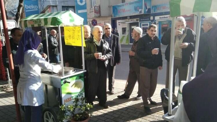 Bursalı tavuk firmasının arabada tavuk suyu çorba projesi ağır kış şartları nedeniyle vatandaşlardan büyük ilgi gördü.