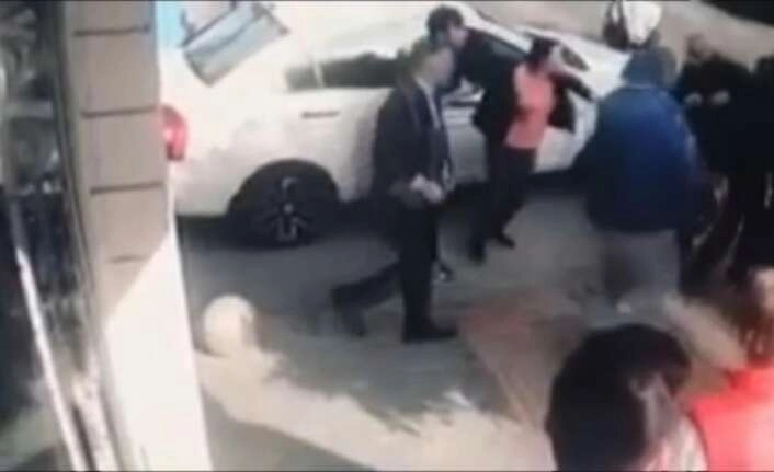 Aralarındaki tartışma kısa sürede kavgaya dönüşürken, sürücü erkek şahıs ve kız arkadaşı 3 çocuğu yanında olan kadını tekme ve tokat döverek yerde sürüklediler. Çevredekiler olan biteni izlerken; esnaflardan biri kavga seslerini duyarak olay yerine gitti. Duyarlı esnaf, kadını kurtarıp, erkek otomobil sürücüsünü etkisiz hale getirdi. Bu anlar ise bir işyerinin güvenlik kamerası tarafından saniye saniye kaydedildi.