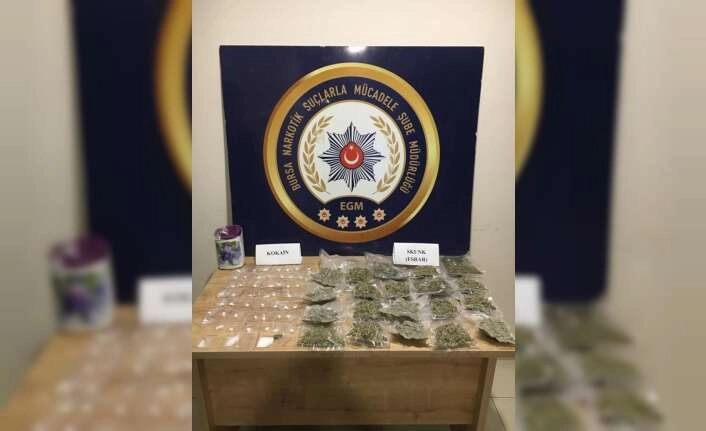 Narkotik Suçlarla Mücadele Şube Müdürlüğünce uyuşturucu madde ticareti yapan şahısları yakalamak için Bursa genelinde büyük çaplı operasyon düzenlendi. Farklı günlerde drone ve narkotik köpeği ile yapılan operasyonlarda 45 zehir taciri uyuşturucu maddeyle yakalandı. Yakalanan kişilerin araçlarında ve evlerinde yapılan aramalarda 10 kilo bonzai, 7 kilo 500 gram metamfetamin, 4 kilo 500 gram esrar, 65 gram kokain, 82 kök Hint keneviri, 6 adet ruhsatsız tabanca ve 43 adet fişek, 3 adet ruhsatsız tüfek ve 12 adet fişek, 5 adet hassas terazi ele geçirildi. Ekiplerin yaptığı çalışmalar neticesinde yakalanan 45 kişiden 26’sı ‘Uyuşturucu veya Uyarıcı Madde Ticareti Yapmak’ suçundan çıkarıldığı mahkemece tutuklanırken, 19 kişinin ise sorgusu sürüyor.