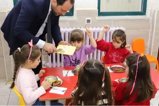 Millî Eğitim Bakanlığının eğitime erişimini artırmak için sosyal politikalarla öğrencileri desteklemeye devam ettiğini vurgulayan Serkan Gür; “Bakanlığımızın politikaları çerçevesinde öğrencilerimizin ücretsiz bir şekilde güvenli gıdaya erişimiyle ilgili tüm hazırlıklarımızı tamamladık ve okullarımızın açıldığı ilk günden itibaren Türkiye genelinde olduğu gibi ilimizde de ücretsiz yemek uygulamasını başlattık. Geleceğimizin teminatı olan çocuklarımızı; vatanını ve milletini seven, aklın ve ilimin ışığında millî ve manevi değerlerine sahip çıkan fertler olarak yetiştirmek üzere özveri ile çalışmalarımızı sürdürüyoruz. İdareci, öğretmen ve tüm eğitim çalışanlarımızla birlikte ülkemizin evlatlarına ‘Türkiye Yüzyılı Eğitimin Yüzyılı Olacak’ bilinciyle hizmet etmeye devam ediyoruz.” dedi. Ücretsiz yemek uygulaması kapsamında Türkiye genelinde hedefin 5 milyon öğrenci olduğunu belirten Serkan Gür; “Bakanlığımızın liderliğinde başlatılan ücretsiz yemek uygulamasında meslek liselerimizin de görev alması bizleri memnun ediyor. Meslek lisesinde öğrenim gören öğrencilerimiz tarafından hazırlanan yemekler, okul öncesinde eğitim gören kardeşlerine beslenme desteği olarak ücretsiz sunulacak. Eğitim içi bu dayanışma ve iş birliğinin çok önemli olduğunu düşünüyorum. Öğrencilerimize ücretsiz yemek imkânının sağlanması noktasında başta Millî Eğitim Bakanımız Mahmut Özer olmak üzere emeği geçenlere öğrencilerim adına şükranlarımı sunuyorum.” dedi.