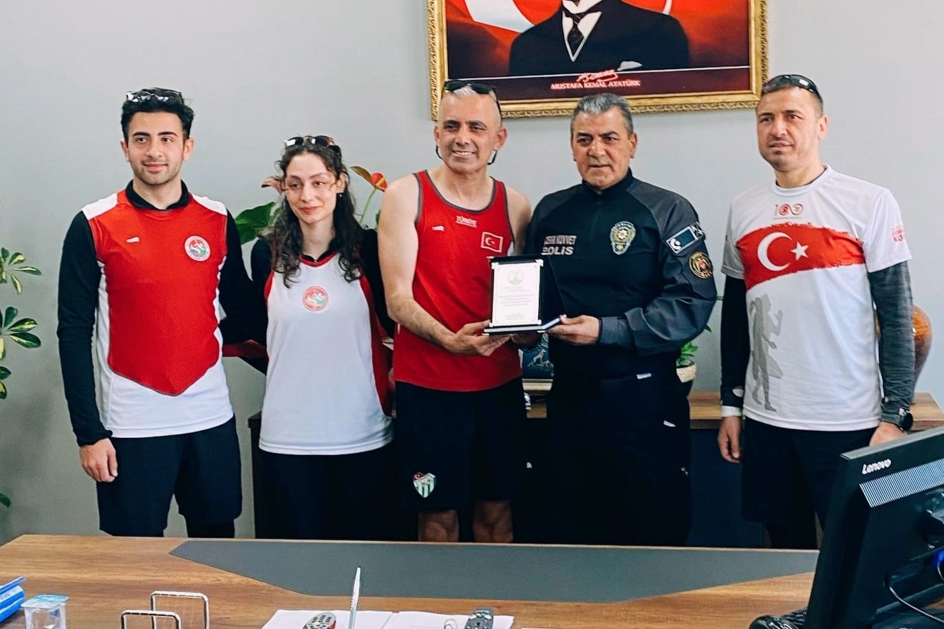 Türk Emniyet Teşkilatı'nın 180. yıldönümü sebebiyle Bursalı Yasin Avcı, Gülbeyaz Özdemir, Metin Bozkurt ve Emin Sonlu, açtıkları 'Polis Haftanız kutlu olsun' pankartıyla Kent Meydanı'ndan koşmaya başladı. Kent Meydanı'ndan başlayan maraton, 6 kilometre devam ederek Çevik Kuvvet Şube Müdürlüğü'nde son buldu. Sporcuları kapıda karşılayan Çevik Kuvvet Şube Müdürü Mustafa Akıncı karşılayarak makamında ağırladı.