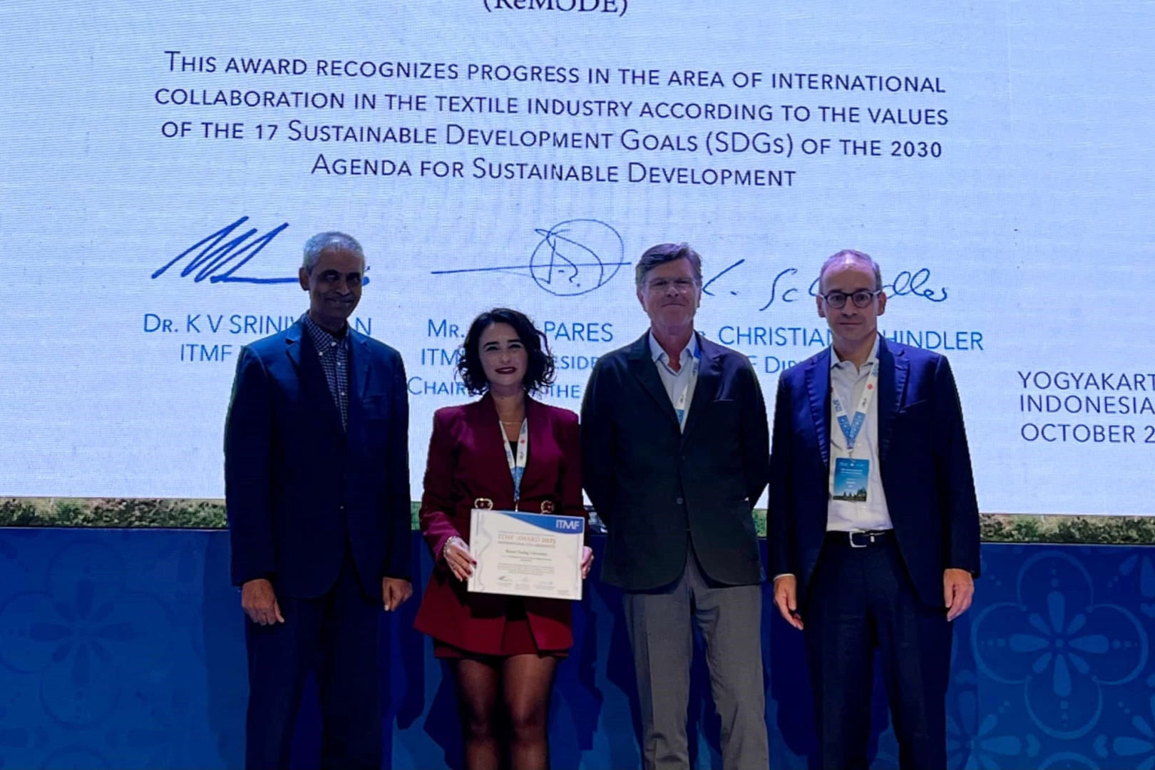 BUÜ İnegöl Meslek Yüksekokulu Tekstil Teknolojisi Programı Öğretim Üyesi Doç. Dr. Zeynep Ömeroğulları Başyigit, bu yıl Endonezya’nın Yogyakarta kentinde düzenlenen International Textile Manufacturers Federation (ITMF) ile International Apparel Federation’un (IAF) tarafından gerçekleştirdiği ITMF & IAF Annual Conference 2025’ta ödül almayı başardı. Doç. Dr. Zeynep Ömeroğulları Başyiğit’in çalışması, etkinlik kapsamında yapılan uluslararası proje yarışmasında dünya genelinden 90’ın üzerinde proje arasından seçilerek "International Collaboration Award" ödülü almaya hak kazandı. Proje dünya tekstil sektöründe ses getirdi Ödül ve etkinlik sürecine dair kapsamlı bir bilgilendirme yapan Başyiğit, sunulan projenin yenilikçi yaklaşımı ve sürdürülebilir dönüşüm vizyonunun BUÜ’de gerçekleştirilen akademik çalışmaların yanı sıra tekstil sektörüne de katkılar sağlayacağını vurguladı. Doç. Dr. Başyigit ayrıca etkinlik sürecinde desteklerini esirgemeyen İstanbul Tekstil ve Konfeksiyon İhracatçı Birlikleri (İTKİB), İstanbul Hazır Giyim ve Konfeksiyon İhracatçıları Birliği (İHKİB) ve Türkiye Tekstil Sanayii İşverenleri Sendikası temsilcilerine de teşekkür etti. Başyiğit; "Ülkemizi ve üniversitemizi uluslararası arenada temsil etme gururunu paylaşmaktan onur duydum" şeklinde konuştu. Rektör Yılmaz'dan tebrik Doç. Dr. Zeynep Ömeroğulları Başyigit’i makamda ağırlayan BUÜ Rektörü Prof. Dr. Feridun Yılmaz, aldığı ödülden dolayı akademisyeni tebrik etti. Araştırma üniversiteleri kategorisinde yer alan BUÜ’nün nitelikli proje ve çalışmalara odaklandığına işaret eden Rektör Yılmaz; "Ulusal ve uluslararası ölçekte kaliteli işler üretmenin peşindeyiz. Üniversitemizi hak ettiği noktalara ulaştırabilmek için hep birlikte elimizden gelen gayreti gösteriyoruz. Zeynep Hocamız da bu anlamda kıymetli bir projenin yürütücülüğünü üstlendi. Aldığı ödül ile de bizleri gayet mutlu etti. Başarılarının devamını diliyoruz" ifadelerini kullandı.