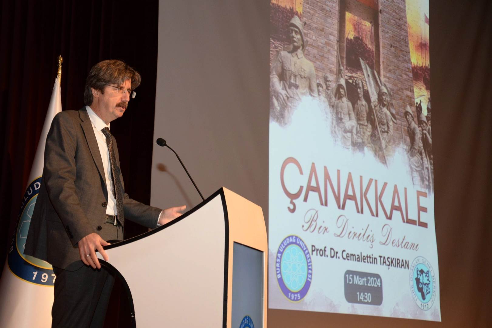 Prof. Dr. Mete Cengiz Kültür Merkezi’nde düzenlenen programa BUÜ Rektörü Prof. Dr. Ferudun Yılmaz, Fen-Edebiyat Fakültesi Dekanı Prof. Dr. Bilgen Osman, Türk Ocakları Bursa Şubesi Başkanı Prof. Dr. Selçuk Kırlı, Işıklar Jandarma Astsubay Meslek YüksekokuluKomutanı Albay Recep Karabulut, akademik ve idari personel ile çok sayıda öğrenci katıldı. Zafer günümüze ışık tutuyor Açılış töreninde konuşan Rektör Prof. Dr. Ferudun Yılmaz, Çanakkale’de şehadetin neredeyse somut olarak dile geldiğine söyledi. Halen o bölgeye yapılan ziyaretlerde aynı hissiyatın yaşandığına işaret eden Prof. Dr. Ferudun Yılmaz; “Milletlerin tarihinde böylesi tecrübeler son derece yön vericidir. Bu toprakları vatan olarak muhafaza etmemizin en sağlam reaksiyonu Çanakkale’de gösterilmiştir. İçinde şehadetin olduğu tecrübeye ilişkin ne kadar söz ederseniz edin kafi gelmeyecektir. Nitekim bu bilinç tam anlamıyla içimize işlemiş, şairlerimiz ve yazarlarımız söz konusu destan üzerine çokça yazmışlardır. Çanakkale destanı, bu milletin o dönemin süper gücü karşısında vatanını muhafaza için neleri gerçekleştirebileceğini gösterdiği gibi aynı zamanda günümüze ışık tutması açısından da önem arz etmektedir. Aradaki güç asimetrisine rağmen Türk milletinin hiçbir şekilde yenilemeyeceğini kanıtlamıştır. Allah, devletimize ve milletimize zeval vermesin. Bir daha böylesi durumlar yaşatmasın” diye konuştu. İkinci diriliş Çanakkale’de yaşandı Türk Ocakları Bursa Şubesi Başkanı Prof. Dr. Selçuk Kırlı ise Çanakkale zaferinin gerçek anlamda mübarek bir konu olduğunu vurgulayarak; “Yüzyıllarca geri çekilen Türk’ün tekrar ayağa kalkarak üzerine gelenleri durdurduğu yer Çanakkale’dir. Bu toplantının adının diriliş destanı olması çok önemlidir. İlk dirilişi Ergenekon’da yaşadıysak, ikinci dirilişi Çanakkale’de yaşadık. Benim için İstiklal Savaşı’nın da başlangıcıdır. Türk Ocakları için Çanakkale çok mühimdir. Üstünde kan olmayan toprak beş para etmez. Burası bizim vatanımız, Çanakkale bu vatanın bizim olmasının başlangıcıdır” açıklamasında bulundu. Çanakkale Bir Diriliş Destanı konferansında konuşmacı olarak yer alan Prof. Dr. Cemalettin Taşkıran da; “Çanakkale, Türk tarihinin şanlı bir sayfasıdır. Bunu bir kere en baştan söylemek gerekiyor. Gerçek bir ölüm kalım savaşıdır. Karşı taraf bizim kazanmamıza şans vermiyordu. Ancak Türk insanının kanaatkarlığı, vatanseverliği ve imanı Çanakkale zaferini bize kazandırmıştır. Onun için diyorum ki bu zafer, Türk tarihinin en şanlı olaylarından birisidir. Zaferlerimiz kadar mağlubiyetlerimizi de unutmamak gerekiyor. Buralardan ders çıkarmak ve ülkemizi geliştirmeyi sürdürmeliyiz” şeklinde konuştu. Konferansın sonunda Prof. Dr. Cemalettin Taşkıran’a katılımları ve sunumlarından ötürü teşekkür plaketi takdim edildi.
