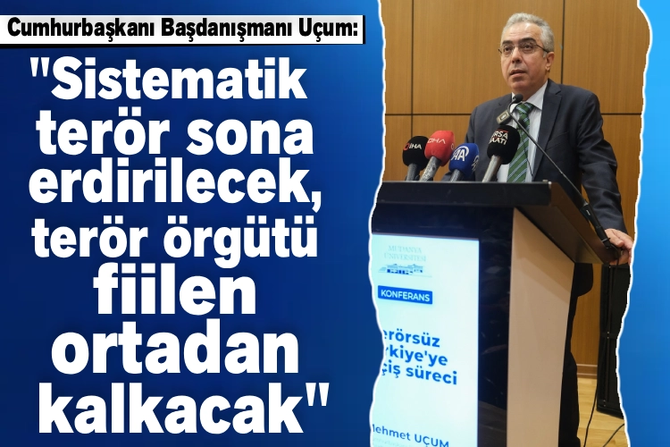 "Terörsüz Türkiye'ye geçiş süreci" adlı konferansta konuşan Cumhurbaşkanı Başdanışmanı Mehmet Uçum, "Sistematik terör sona erdirilecek, terör örgütü fiilen ortadan kalkacak, kimlik istismarı üzerinden yapılan hukuk dışı faaliyetler sona erecek; siyaset üzerindeki terör, kültür alanları üzerindeki terör, din alanları üzerindeki terör tamamen ortadan kalkacaktır. Terörsüz Türkiye hedefi böyle bir projedir" dedi.