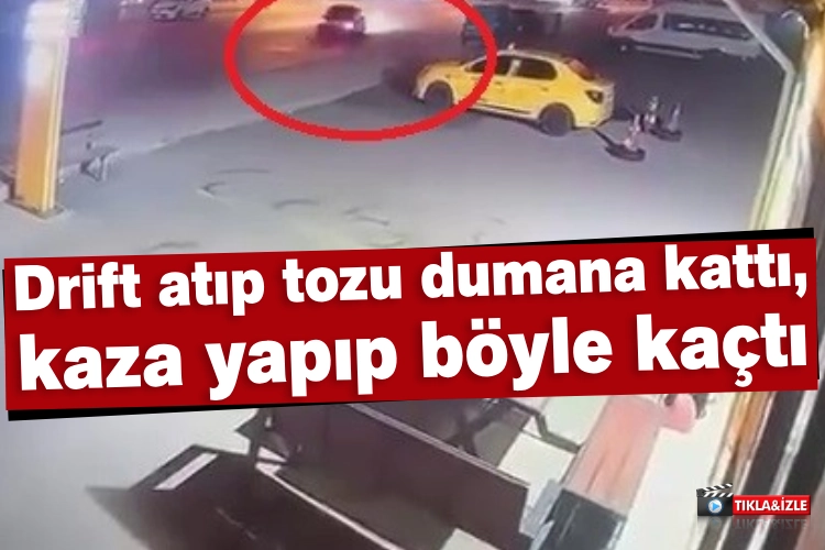 Drift atıp tozu dumana kattı, kaza yapıp böyle kaçtı