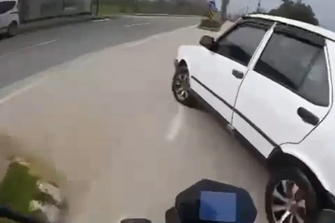 Görüntülerde, otomobil sürücüsünün tabelaya rağmen u dönüşünün yasak olduğu yerden sinyal vermeden geçiş yapmaya çalıştığı görüldü.