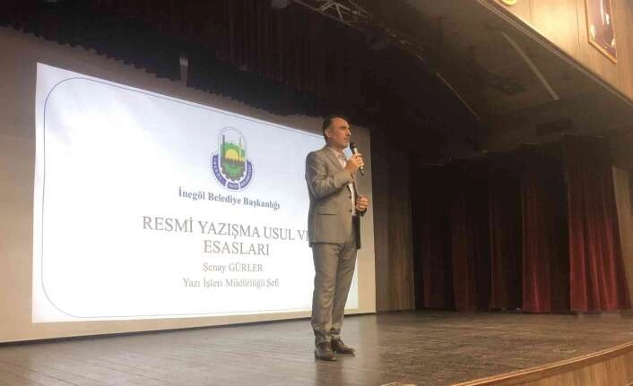 İnegöl Belediyesi İnsan Kaynakları ve Eğitim Müdürlüğü tarafından düzenlenen eğitim çalışmaları çerçevesinde Kent Müzesi konferans salonunda ’Resmi Yazışma Kuralları Eğitimi’ düzenlendi. Yazı İşleri Müdürlüğü Şefi Şenay Gürler ve Eğitim Koordinatörü Sezgin Koyun tarafından verilen eğitime 61 personel katılım sağladı. İnsan Kaynakları ve Eğitim Müdürü Osman Kalkan, resmi yazışma kurallarının kurumun itibarı açısından önem arz ettiğini belirtti. Ayrıca resmi yazışma kurallarında yönetmeliğin belirlediği çerçevede standartlaşmanın, Belediyenin kurumsal imajının yanı sıra diğer resmi kurum ve kuruluşlar ile iletişimi yönünden önemine vurgu yapıldı.