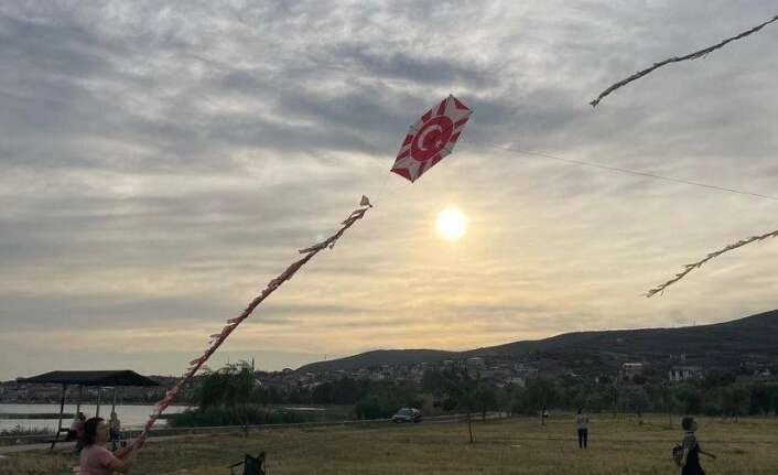 Metrelerce yüksekliğe ulaşan uçurtmalar dakikalarca gökyüzünde dalgalanarak güzel bir görüntü oluşturdu.
