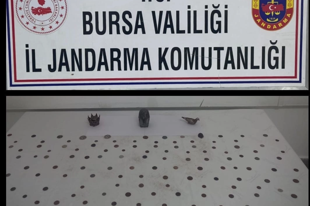 Bursa İl Jandarma Komutanlığı İstihbarat Şube Müdürlüğü ve Mudanya Bademli Jandarma Karakol Komutanlığı ekipleri, Mudanya ilçesine satılmak üzere tarihi eser getirildiği istihbaratına ulaştı. Ekipler, 2 şüphelilerin kullandığı motosikleti Mudanya ilçesi girişinde önünü keserek durdurdu. Şahısların üzerlerinde yapılan aramada antik döneme ait 125 adet sikke ve 3 adet obje ele geçirildi. Şüpheliler T.Ö (47) ve S.B(46) gözaltına alınırken, olayla ilgili tahkikat sürüyor.