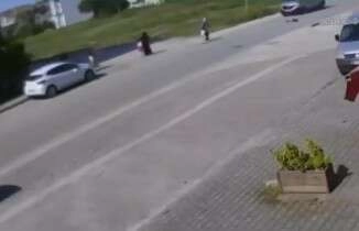 Edinilen bilgiye göre, olay Demirci Mahallesinde yaşandı. Mahalle halkının bir süredir toplanması için başvuru yaptığı sokak köpeklerinden bir tanesi annesi ve babası ile birlikte yürüyen 2 küçük çocuğa doğru hamle yapınca çocuklardan bir tanesi yola fırlayıp kaçmak istedi. Tam bu sırada yoldan geçen bir araç küçük çocuğa çarpmak üzereyken çocuğun ayağı takılıp yere yuvarlandı. Küçük çocuğun araç altında kalmaktan son anda kurtulduğu o anlar bir iş yerinin güvenlik kamerası tarafından saniye saniye görüntülendi. Korkup kaçan çocuklar daha sonra anne babalarının yanına gidip yollarına devam etti.