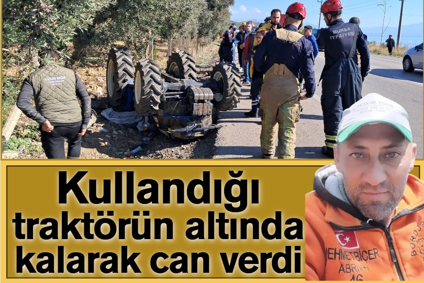 Olay, Bursa'nın İznik ilçesi Boyalıca Mahallesi mevkisinde meydana geldi. Edinilen bilgiye göre, traktörü ile zeytin bahçesindeki suyu kapatmaya giden 1 çocuk babası Mehmet Biçer, yol kenarındaki çukura girdikten sonra, direksiyon hakimiyetini kaybedip yolun dışına çıktı. Kazayı gören çevredekiler hemen 112 ekiplerine bilgi verdi. Olay yerine gelen sağlık ekipleri, aracın altında kalan 37 yaşındaki adamın olay yerinde hayatını kaybettiğini belirledi. Savcılık incelemesinin ardından, Biçer'in cesedi Bursa Adli Tıp morguna kaldırıldı.