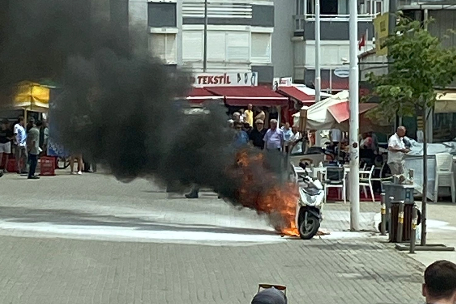 Olay, Bursa'nın Gemlik ilçesi Kumla Mahallesi sahilinde meydana geldi. Edinilen bilgiye göre, sahibinin park ettiği motosiklet kısa süre sonra alev aldı. Yangın tüpüyle müdahale edilen motosiklet, kısa sürede alev alev yanarak küle döndü. Olayla ilgili tahkikat devam ediyor.