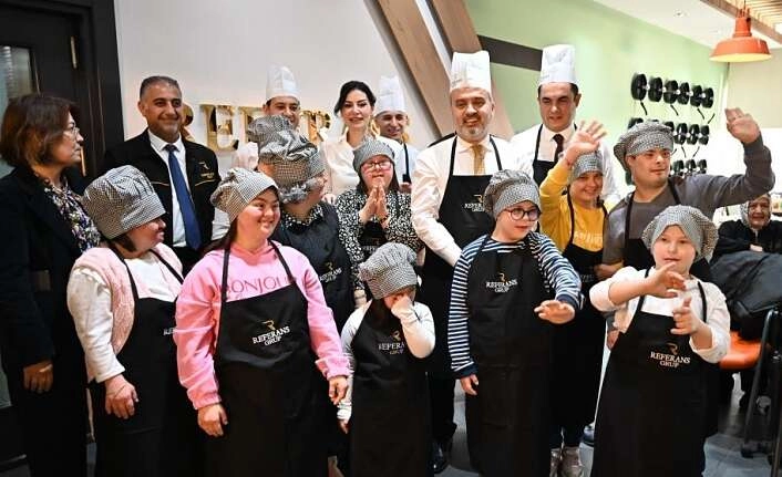 Melek Yüzler Down Sendromu Derneği ve Referans Mutfak Akademisi işbirliğinde düzenlenen yemek yapma etkinliği 10 down sendromlu çocuk ve ailelerinin katılımıyla Referans Akademi mutfağında gerçekleştirildi. Etkinlik için özel olarak hazırlanan şef önlüklerini giyip, şapkalarını takan özel şefler, tezgahın başına geçip, profesyonel şefler ve annelerinin de desteğiyle mutfaktaki hünerlerini sergiledi. Kendi eserleri olan yemekleri özenle hazırlayan özel şefleri, Bursa Büyükşehir Belediye Başkanı Alinur Aktaş da yalnız bırakmadı.