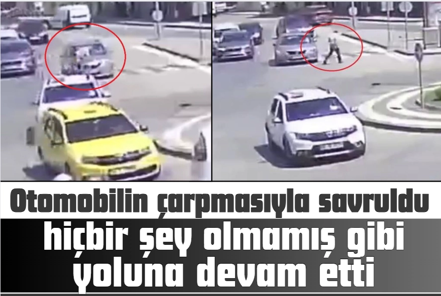 Olay, merkez Osmangazi ilçesi Çekirge Mahallesi'nde meydana geldi. Otobüs durağında bekleyen ve bir anda koşarak yola fırlayan vatandaş seyir halindeki otomobilin önüne çıktı. Sürücü frene bassa da çarpışma kaçınılmaz oldu. Çarpmanın etkisiyle yere savrulan şahıs korkulu anlar yaşatsa da kısa sürede kendisini toplayıp sanki hiç kazaya karışmamış gibi yoluna devam etti. Görenleri hayrete düşüren kaza anı çevredeki bir iş yerinin güvenlik kamerasına saniye saniye yansıdı. Kazayla ilgili soruşturma başlatılırken, vatandaşlara da yaya geçidi kullanma uyarısı yapıldı.