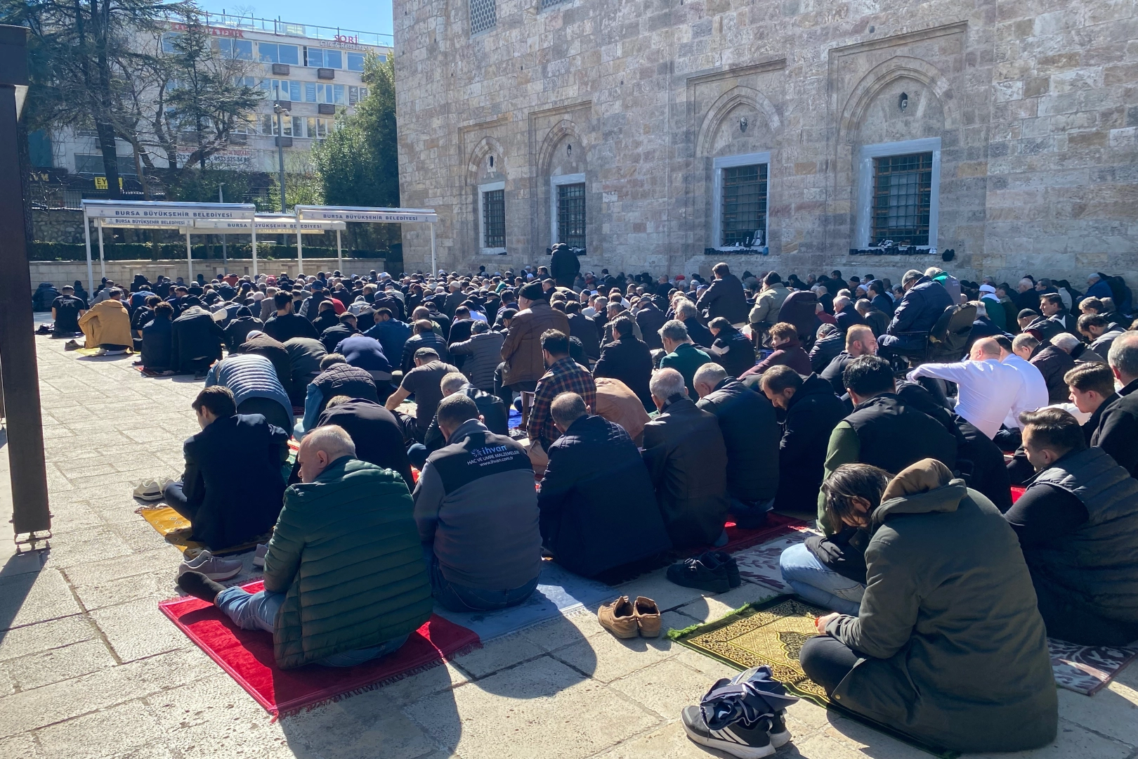 Havanın sıcak olmasının da etkisiyle çok sayıda vatandaş yanlarında getirdikleri seccadeleri avluya sererken, omuz omuza kılınan cuma namazında birlik ve beraberlik görüntüleri oluştu. Ramazan ayının manevi atmosferi, ilk cuma namazında camilere yansıdı. Cuma namazına Bursa İl Emniyet Müdürü Kadir Gökçe de katılım sağladı. Vatandaşlar, Ramazan ayının huzurunu ve bereketini hep birlikte yaşadıklarını dile getirdi. Okunan cuma hutbesinde ise Ramazan ayının camilerle bağı güçlendirmek için önemli bir fırsat sunduğu vurgulandı. Camilerin yalnızca ibadet mekânı olmadığı; birlik, kardeşlik ve manevi dirilişin merkezi olduğu ifade edildi. Namazı ve camiyi hayatın merkezine almanın dünya ve ahiret saadetine vesile olacağı belirtildi.