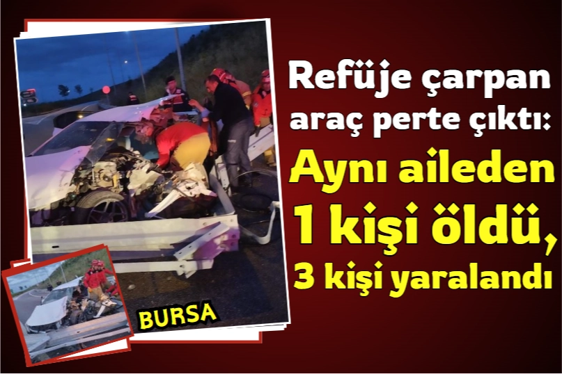 Kaza, İstanbul-İzmir Otoyolu İstanbul istikameti Bursa'nın Mustafakemalpaşa ilçesinde meydana geldi. Edinilen bilgiye göre, baba E.G. idaresindeki otomobil yol ayrımına geldiği esnada kontrolden çıkıp refüje çarptı. Kazanın şiddetiyle savrulan araç adeta hurdaya dönerken, çevredekiler ise yaralıların yardımına koştu. İhbar üzerine gelen itfaiye ekipleri araçta sıkışan 4 kişiyi çıkarıp sağlık ekibine teslim etti. Sağlık ekiplerince baba E.G.’nin olay yerinde hayatını kaybettiği belirlenirken, anne S.G. ile 2 çocuğu yaralandı. Olayla ilgili tahkikat devam ediyor.