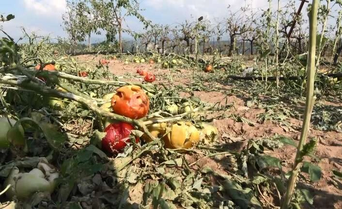 Geçtiğimiz gün Bursa’da etkili olan sağanak yağış, Bursa Şehirlerarası Otobüs Terminali'nin çatısını çökertti. Mudanya ilçesindeki bazı mahalleleri sel basarken, Osmangazi ilçesine bağlı Karabalçık Mahallesi'nde ise şiddetli dolu yağışı ve sel olayları çiftçilerin bütün ürünlerini talan etti. Tonlarca sebze ve meyve döküldü. Mahsulün tamamı, ceviz büyüklüğünde yağan dolu sebebiyle döküldü Ekim yaptıkları tarlaları dolu vuran ve mahsullerinin yüzde yüzünün zarar gördüğünü aktaran Çiftçi Ender Esen, “Yüzde yüz zararımız var. Dolu felaketi çok kötüydü. Cevizden büyük dolu yağışıyla karşılaştık. Mahsulü daha toplamadık. Yüzde 10’unu bile alamadık. Kaybımız çok büyük. Köyün yüzde 95’i geçimini çiftçilikle kazanıyor” dedi. "Masraflar ağır, devletimizden yardım bekliyoruz" Çiftçiliğin masraflarının ağır olduğunu ekleyen Esen, “Masraflarımız çok yüksek. Mazot çok pahalı ve biz bu işle başa çıkamıyoruz. Tek temennimiz sezonun güzel ve verimli olmasıydı fakat başımıza böyle bir olayda gelince ne yapacağımızı bilemiyoruz. Şu an tahminime göre sadece benim 20 tona yakın incir, 30-35 ton kadar domates, 25-30 ton kadar üzüm mahvoldu. Fiyat olarak bir şey diyemem onu piyasa belirliyor. Yetiştirdiğimiz ürünün fiyatını biz belirleyemiyoruz. Piyasa ne ise biz de uymak durumundayız. Bizim ürünlerimizin ihracatı zayıf. Fiyatlar da düşüktü ama bir şekilde bizi ayakta tutmaya yetiyordu. Böyle bir afette olunca yapacak bir şeyimiz kalmadı. Köydeki çiftçilerin yüzde 80-85’inde bu zarar var. Bu zarar sadece bizim köyümüzde değil civar köylerde de var. Bizim bölgede en çok üzüm, incir, domates ve zeytin var” diye konuştu.