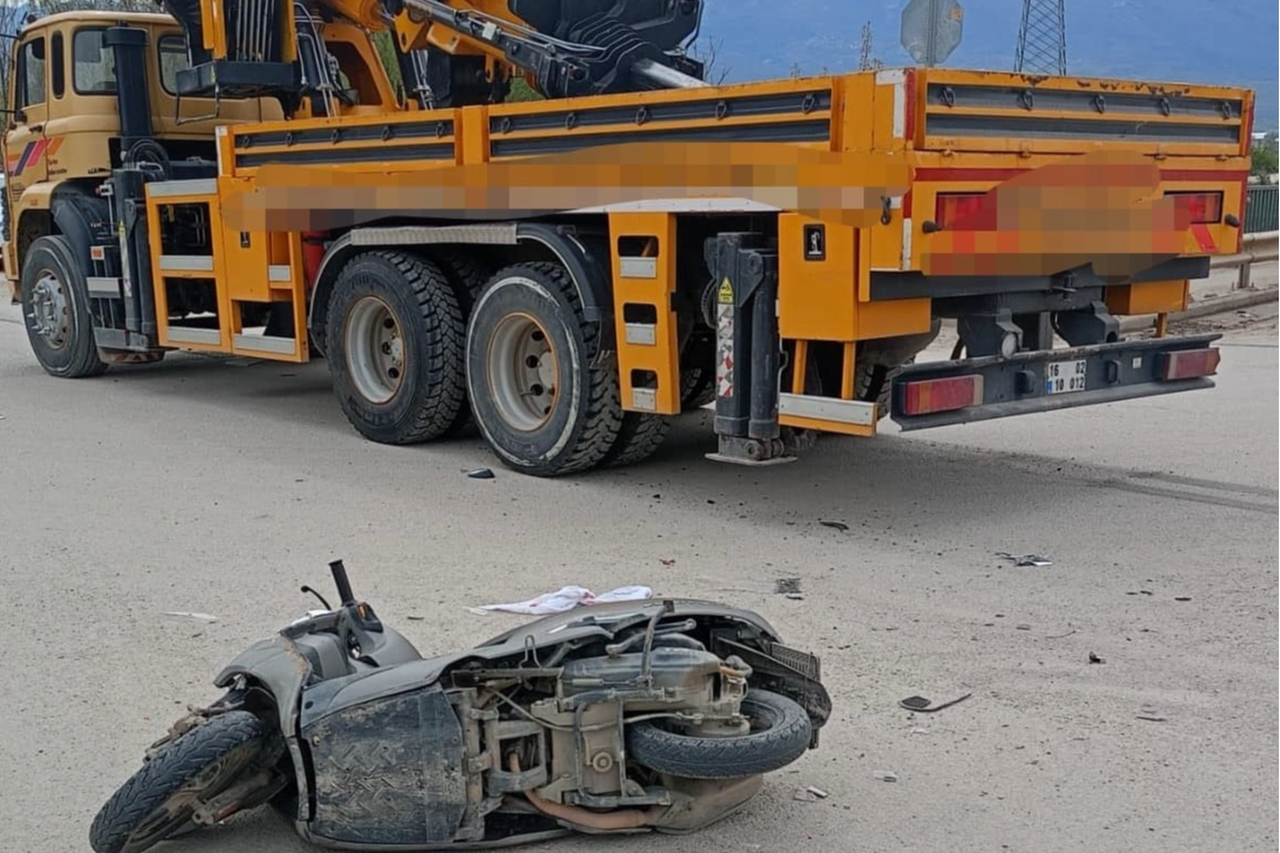 Kaza Cumhuriyet mahallesi Mareşal Fevzi Çakmak Caddesi üzerinde meydana geldi. Sürücü Sercan D.(25) yönetimindeki vinç ile sürücü Mehmet T. (34) yönetimindeki 16 BEK plakalı motosiklet çarpıştı. Çarpışmanın etkisiyle devrilen motosikletten düşen sürücü yaralandı. Yaralı kaza yerine sevk edilen Ambulansla İnegöl Devlet Hastanesine kaldırıldı. Polis kazayla ilgili soruşturma başlattı.