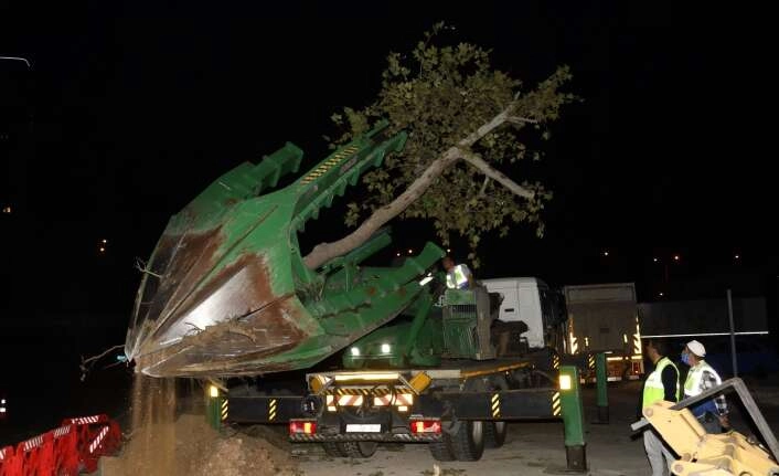 Bir taraftan yüklenici firma tarafından çalışmalar devam ederken, Bursa Büyükşehir Belediyesi Park ve Bahçeler Dairesi Başkanlığı ekipleri de güzergah üzerindeki yetişkin ağaçları taşıma işlemine başladı. Trafiği aksatmamak için gece yarısı başlayan çalışmalarda özel söküm aracıyla köklerinden sökülen ağaçlar, Hamitler’deki ağaçlandırma sahasına dikiliyor. Hat üzerine denk gelen 4 ağaç, bu yöntemle nakledilirken, 10 ağaç da çalışmaları ve trafiği aksatmayacak şekilde budanıyor.