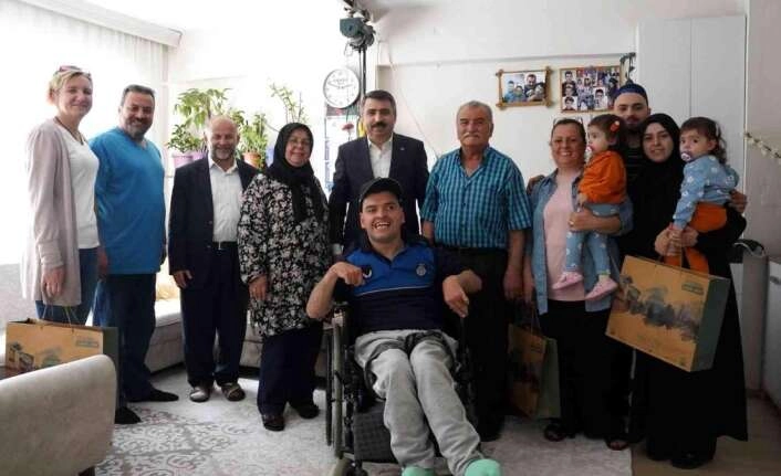Yıldırım’ın yeni zabıta memuru Özkaya’yı tebrik edip görevinde başarılar dileyen Başkan Oktay Yılmaz, “İlçemizde yaşayan engelli vatandaşlarımızın engelsiz bir hayat sürmesini sağlamak için büyük gayret gösteriyoruz. Kendilerini evlerinde ziyaret ederek onlarla sohbet ediyor, özel günlerinde yanlarında bulunarak yalnız olmadıklarını gösteriyoruz. İsteklerine anında cevap vermeye çalışıyoruz. Ramazan Bayramı dolayısıyla bizleri evine davet eden Önder kardeşimizin hanesine misafir olduk, kendisi ve kıymetli ailesiyle bayramlaştık. Zabıtaları çok seven kardeşimize zabıta üniforması hediye ettik. Bundan sonra mahalle Önder’e emanet” dedi. Öte yandan mutluluğu gözlerinden okunan Önder Özkaya ve ailesi, anlamlı hediyesinden dolayı Başkan Oktay Yılmaz’a teşekkür etti. Başkan Yılmaz, üniformasını giyen Önder Özkaya ile hatıra karesi çektirdi.