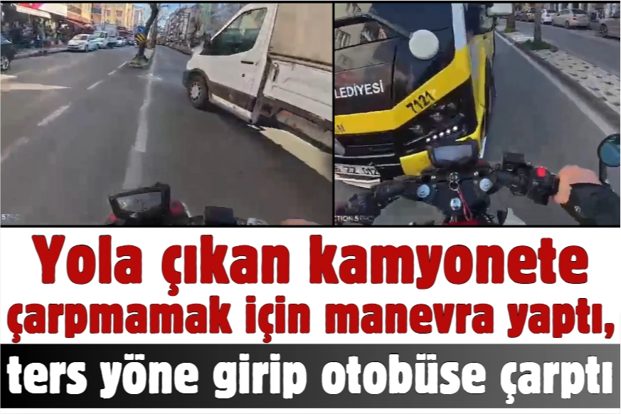 Bursa'nın Yıldırım ilçesi Yeşilyayla Mahallesi'nde motosikletiyle ilerleyen Mert A., cadde üzerinde yola aniden çıkan kamyonete çarpmamak için manevra yapıp ters yöne girdi. Fren yapmasına rağmen duramayan sürücü, karşı taraftan gelen yolcu dolu otobüsle kafa kafaya çarpıştı. O anlar kameraya yansırken, facianın eşiğinden dönen sürücü, kazayı şans eseri yara almadan atlattı. İhbar üzerine gelen trafik ekiplerince değerlendirilen kazada motosikletli sürücüye hızlı araç sürmekten yüzde 25, tali yoldan çıkan kamyonet sürücüsüne yüzde 75 kusur verildi.