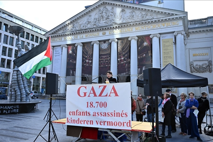 Brüksel'deki Kraliyet Tiyatrosu önünde bir araya gelen sanatçılar, "Gazze çocuklarının sessizliği" adını verdikleri gösteride 18 bin 700 çocuğun İsrail tarafından öldürüldüğünü belirtti.