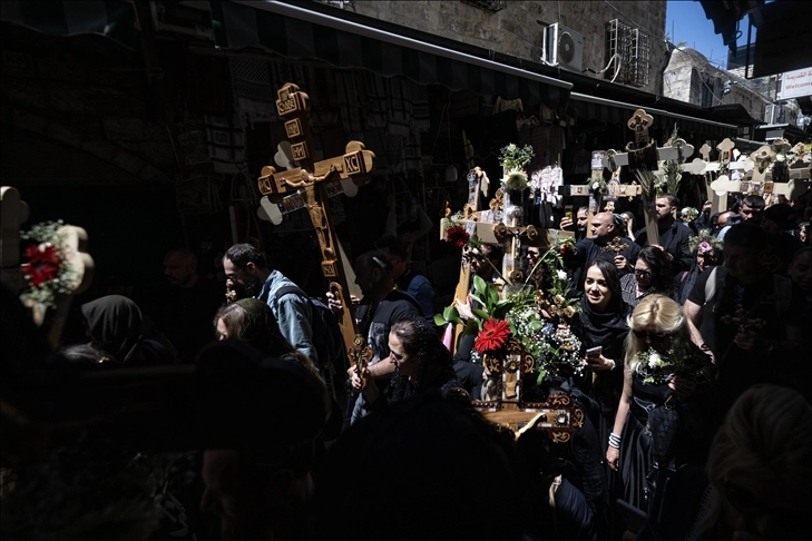 Yüzlerce Hristiyan, "Kutsal Cuma" dolayısıyla İsrail polisinin konuşlandığı Kudüs'ün Eski Şehir bölgesindeki ara sokaklardan Kıyamet Kilisesi'ne yürüdü.