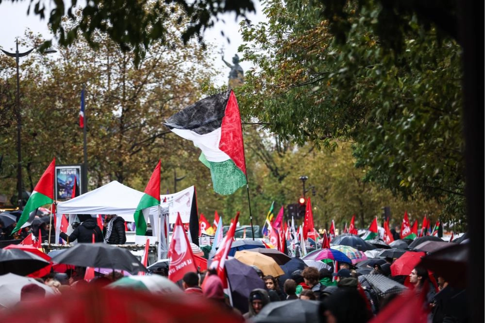 İsrail’in Gazze Şeridi’ne yönelik saldırıları aralıksız 43 gündür sürüyor. İsrail güçlerinin ayrım gözetmeksizin sivilleri vurması ise dünyanın tepkisini çekmeye devam ediyor. Dünyanın dört bir yanında devem eden Filistin’e destek yürüyüşlerinden biri de bugün Fransa’nın başkenti Paris’te düzenlendi. Başkentin merkezinde toplanan yaklaşık 60 bin kişi, sağanak yağmura rağmen yürüyüşe devam etti. Filistin destekçileri, “Gazze ve Batı Şeria’da katliamı durdurun” ve “Derhal ateşkes” yazılı pankartlar taşıdı. Yürüyüşte konuşma yapan Genel Çalışma Konfederasyonu (CGT) Genel Sekreteri Sophie Binet, “Fransa, silahların susması için derhal ateşkes çağrısı yapmalı” ifadelerini kullandı.
