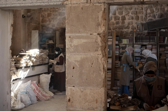 Kitapların büyük kısmının enkaz ve patlama kalıntıları arasında bulunduğunu belirten Amassi, "Kitaplar taşlarla, barut kalıntılarıyla, şarapnel parçalarıyla ve kütüphanede geceleyen hayvanların bıraktığı izlerle karışmış durumdaydı." dedi.