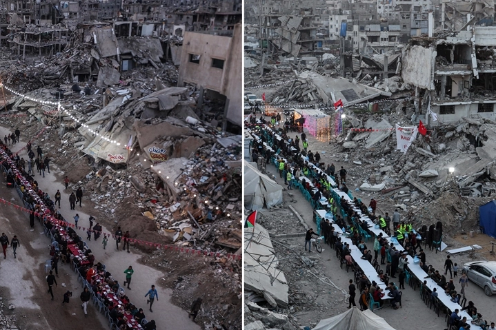 Farklı yıllara ait kareleri aynı noktada birleştiren ortak payda İsrail saldırılarının geride bıraktığı yıkım olurken; ramazan heyecanı, enkaz arasında kurulan iftar sofralarıyla sürdürülmeye çalışılıyor.