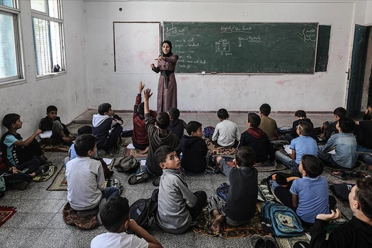 Filistinli öğrenciler, İsrail’in saldırılarıyla büyük hasar gören okullarda zorluklara rağmen eğitime başlarken, Nusayrat Mülteci Kampı’nda bulunan Razi Okulu’nda ders başı yaparak yeni eğitim-öğretim yılını kararlılıkla sürdüreceklerini ifade etti.