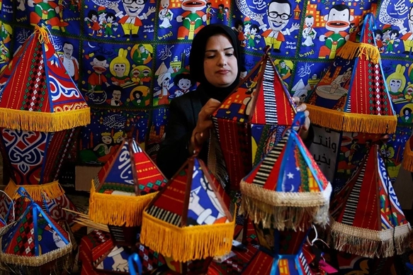 Gazze Şeridi'nin orta kesimindeki Deyr el-Belah kentinde yaşayan 30 yaşındaki Ula Ebu Selim, el emeğiyle ramazan fenerleri yapıyor.