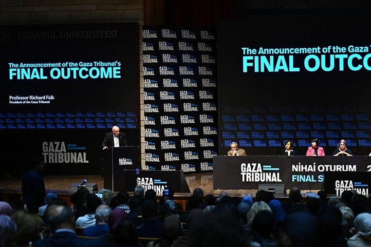 İstanbul Üniversitesi Prof. Dr. Cemil Bilsel Konferans Salonu'nda eski Birleşmiş Milletler (BM) Filistin Özel Raportörü Prof. Dr. Richard Falk başkanlığında toplanan Gazze Mahkemesi üyeleri, nihai kararını duyurdu.