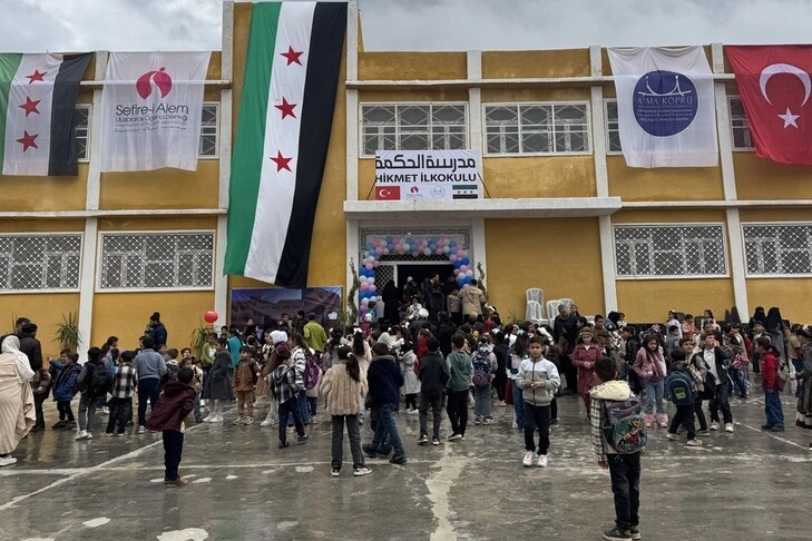 Cengiz, "Burada yeni bir mücadelenin, Suriye'nin yeniden inşası mücadelesinin başlangıcındayız. Türkiye'den eğitim alanında Suriye'ye desteklerimiz devam ediyor." diye konuştu.