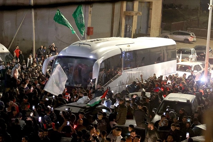 İsrail ile Hamas arasında varılan mutabakat kapsamında karşılıklı esirlerin serbest bırakılmasına bugün de devam edilecek. Yapılan açıklamalara göre, Hamas, bugün elindeki 14 İsrailli esiri daha teslim edecek. Buna karşılık Tel Aviv yönetimi de İsrail hapishanelerindeki 42 Filistinli esiri serbest bırakacak. Bu doğrultuda serbest bırakılacak Filistinli esirler yerel saatle 13.30'da işgal altındaki Batı Şeria'da yer alan Ofer Hapishanesi'ne nakledilecek.